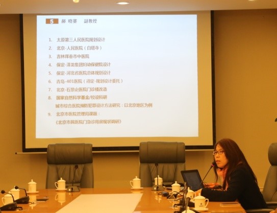 建筑系郝晓赛老师以ppt的形式展现了13位教师的科研、对外交流和课程建设成果。建筑系教师在2016年获批国家自然科学基金2项,完成意大利工作营、美国工作营等对外交流工作。