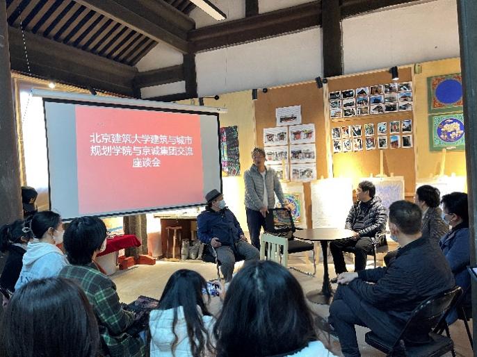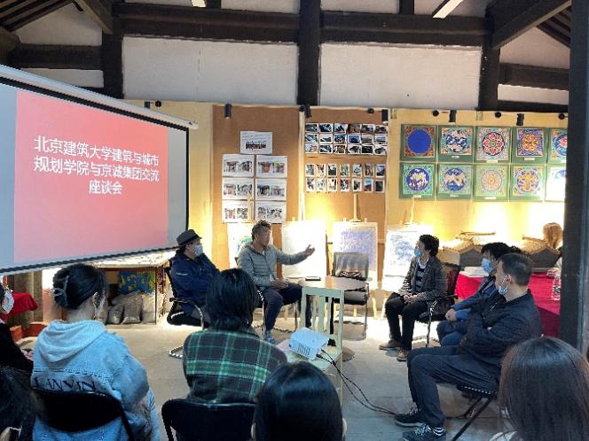 2022年11月4日下午,威廉希尔体育建筑与规划学院的李春青副经理、历史建筑保护系副系主任杨一帆、马全宝老师带领历建21级本科生和部分建筑遗产保护和建筑学研究生,参观了历史建筑同兴和木器店修缮工程和北京京诚集团有限责任公司的建筑技艺工匠培训基地——工匠营,并与京诚集团王永久副总经理、工匠营负责人武冠利、北京北建大建筑设计研究院有限公司经理助理倪越进行了座谈。
