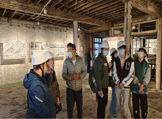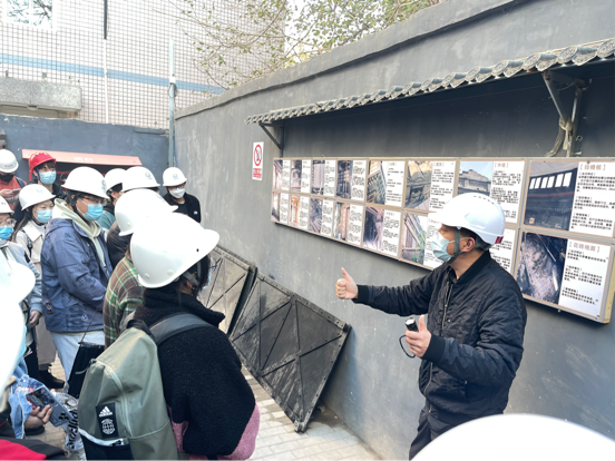 本次参观是结合历建专业二年级《建筑设计一》设计课程开展的传统建筑认知实践教学。同兴和木器店始建于20世纪20年代,是北京市第一批历史建筑,目前正开展研究型修缮工程。同兴和木器店修缮工程主持设计师倪越和京诚集团项目负责人武冠利带领师生了解百年建筑的历史价值与修缮设计,倪越老师耐心为大家介绍历史建筑的一些特殊的构造做法,讲解了原入口铁门、雨水斗、横披窗、铁窗、顶棚、木楼梯、外墙、牌匾、天窗、挂檐板、花砖地面、木窗细部纹理、古建筑砖雕装饰等价值点,不仅让同学们实地体会到历史的意趣,也进一步加深了对于建筑理论实践知识的理解,为将来的学习打下了更扎实的基础。
