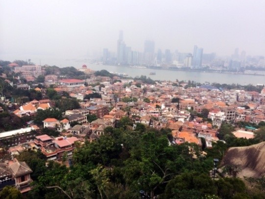 渡轮在海面上平静地行驶,随着一声汽笛,我们靠上鼓浪屿的码头。我们轻轻地踏上鼓浪屿的土地,鼓浪屿的建筑物随山势起伏,错落有致。在密密的树丛中,不时露出粉墙红瓦。这里的房子不像苏杭民居的温婉柔情,也不像北方民居的粗犷豪放,鼓浪屿是建筑博览会,集中体现了欧洲各种不同建筑风格。一座座小洋楼的底下,都会有不同风格的商店、精致典雅的咖啡馆。蜿蜒街道两侧的楼房都在诉说他们各自的历史沧桑。