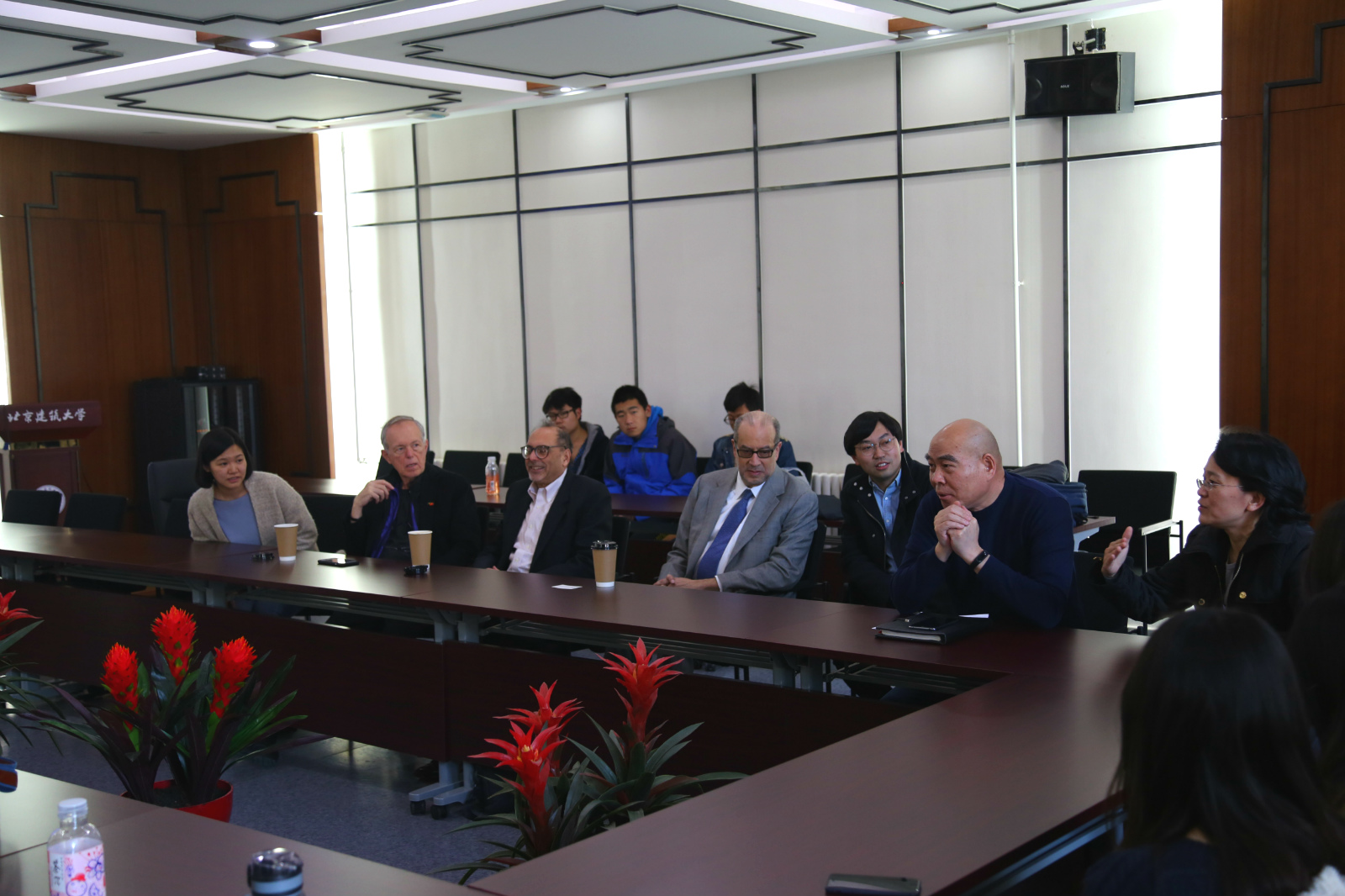 2017年2月28日,美国密歇根大学威廉体育williamhill三位教授 Robert Fishman教授, Douglas Kelbaugh教授 以及Roy Strickland教授与建筑系低年级员工一起就设计作业及一些值得关注的建筑与城市问题进行了学术讨论。威廉体育williamhill副经理胡雪松教授、设计基础部副主任李春青副教授组织了本次讨论,讨论由郝石盟老师和甘振坤博士协助翻译。