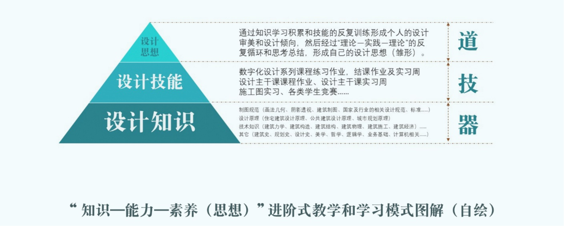 在数字化设计系列课程教学设计中,教学团队注重“进阶式”学习模式的建立,引导员工建立“设计知识——设计技能——设计思想(素养)” 的进阶式学习的概念。在教学中,将设计知识的讲解和设计技能的训练作为常态化、规范化的教学手段,而将启发员工的创新思维、引导员工建立设计批判思维和设计审美意识,鼓励员工逐渐形成个人的设计思想,积累设计素养作为教学的重点和难点。