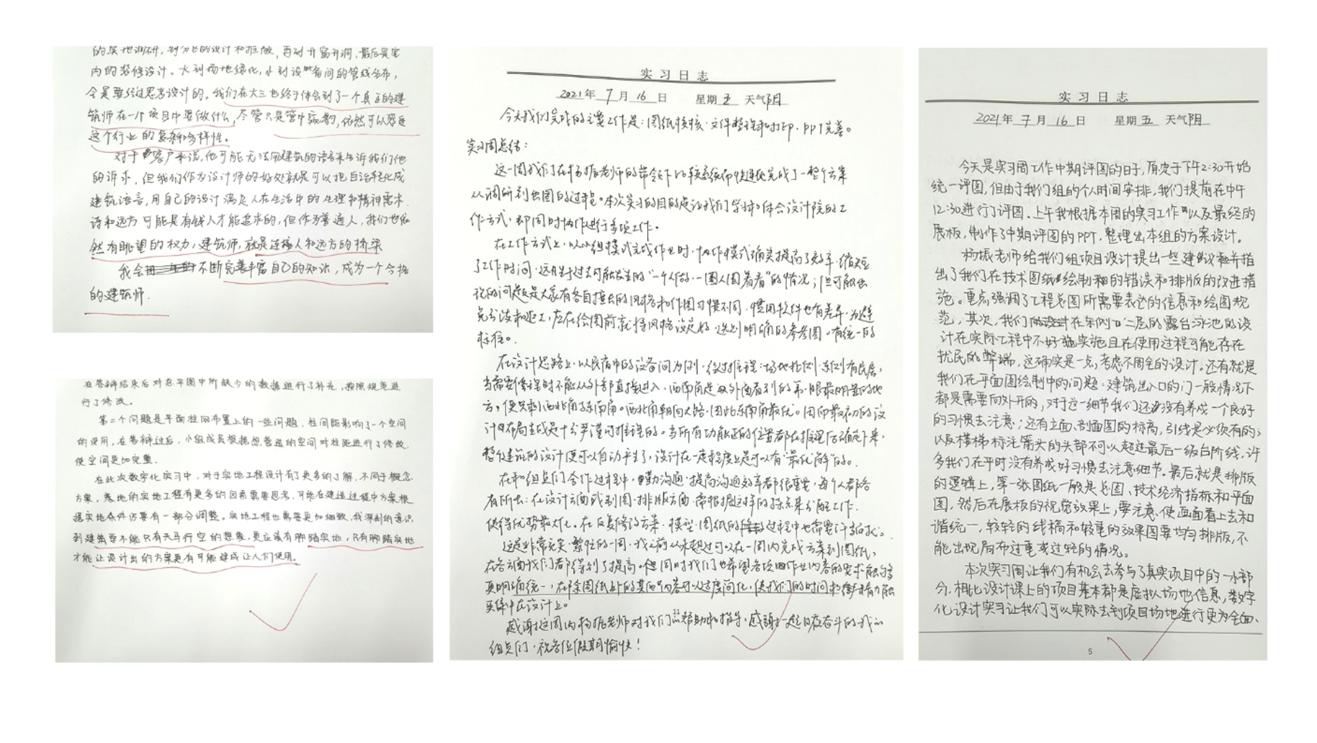 在近十年的教学实践积累的基础上,教学团队形成了“重技术分析,培养员工“精益求精”的工程精神;重设计逻辑,培养员工科学正确的设计方法;重协同协作,培养员工精诚合作的团队精神;”的教学理念,同时在超星学习通平台上建立了课程教学章节体系。。本课程教学过程设计科学,把控严格。在实习开始前进行现场调研和参观学习,鼓励同学们通过各种渠道查找相关案例进行学习。同时合理把控教学过程,每天都有时间进度节点的检查,听取每组同学的进度汇报并进行针对性的辅导。在实习周的周五设置有中期答辩的环节,该环节既能提高大家对项目成果梳理和表达的能力,又能很好地积累教学过程资料。教学最终的成果有小组中每位同学的工作量说明,有电子版的图纸、模型,同时有纸质版的成果展板、实习日志,教学成果全面、细致。