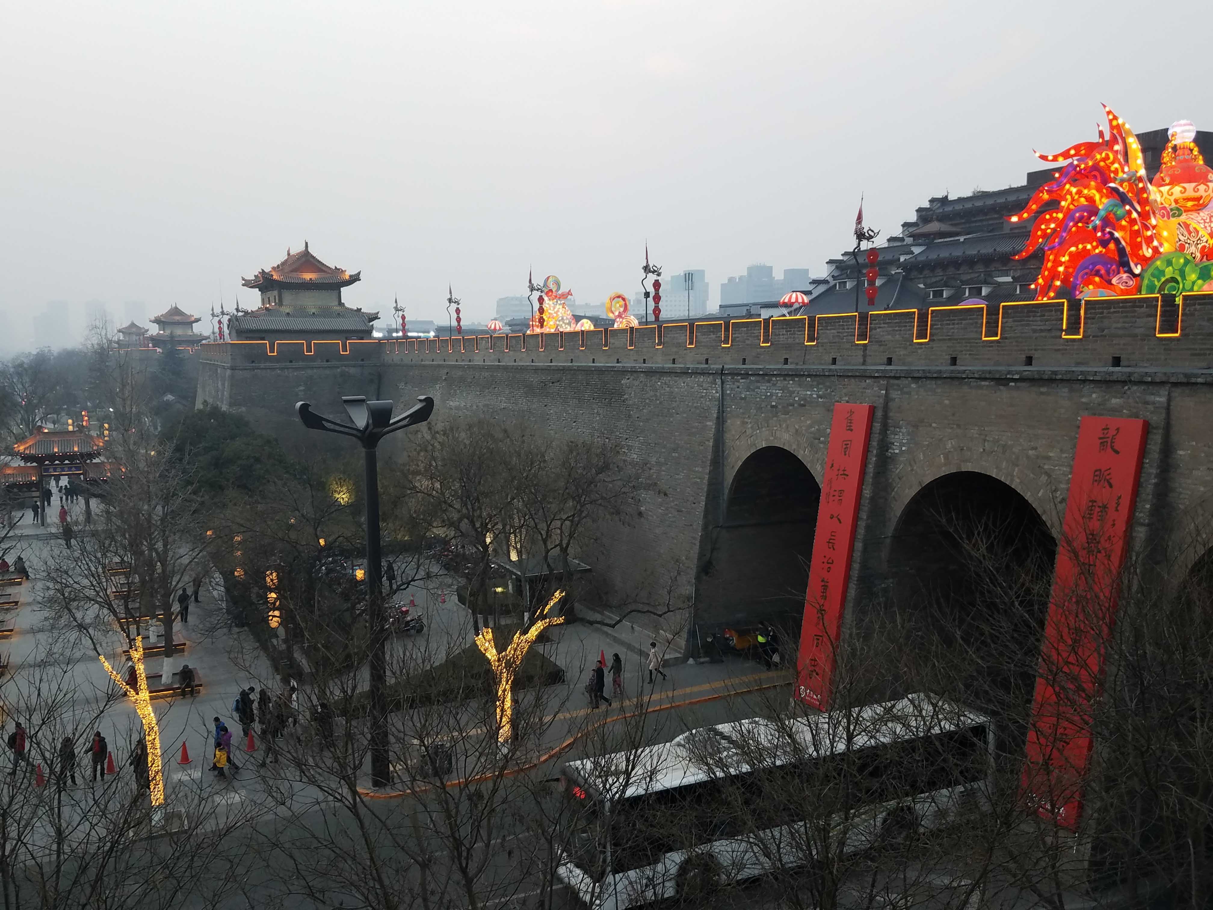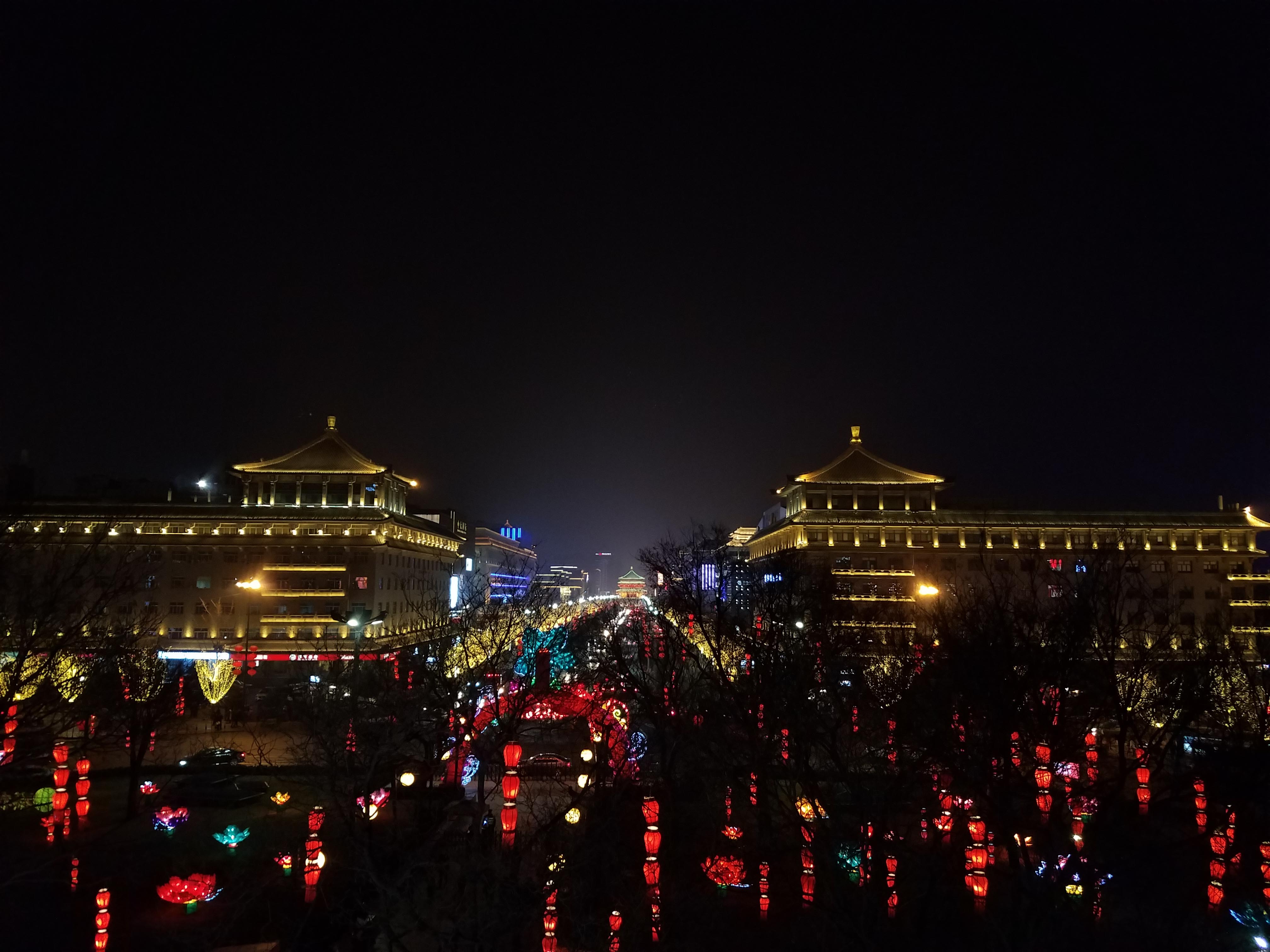 沿着大街向南走,就看到了西安古城墙。城墙向东西延伸,仿佛没有尽头。它或许就是卧在那里守护城池的巨龙吧。夜晚登上城墙,向北可以看到灯红酒绿的都市夜景,向南则可以看到傲然伫立的钟楼。或许就是这不一样的景色,带领我们穿梭于现在和历史之间吧。