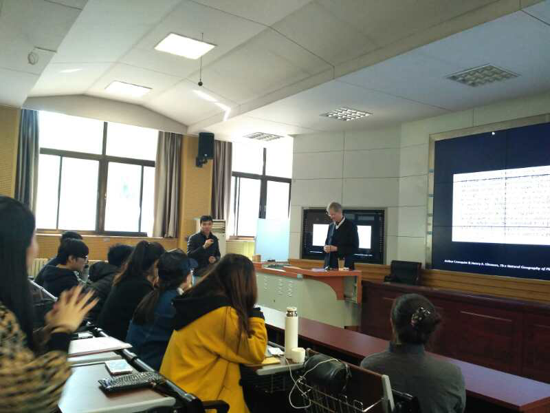 学院师生约20人聆听了崴比·奎台特的讲座。会后,景观系副系主任魏菲宇、讲师孙喆与奎台特进行了深入的交流。本次讲座由景观系讲师张振威担任翻译。