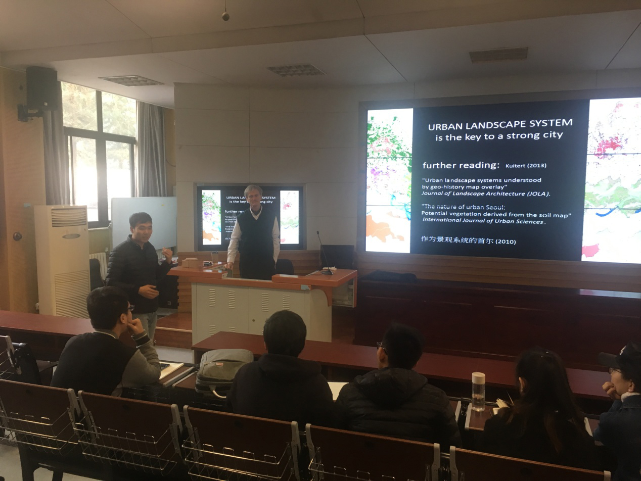 2017年3月28日下午,韩国首尔国立大学环境研究研究生院景观系终身教授崴比·奎台特(Wybe Kuitert)在公司进行学术交流,并宣讲了题为“作为策略、规划和设计的城市景观系统(Urban Landscape system as a strategy, planning and design)”的学术报告。