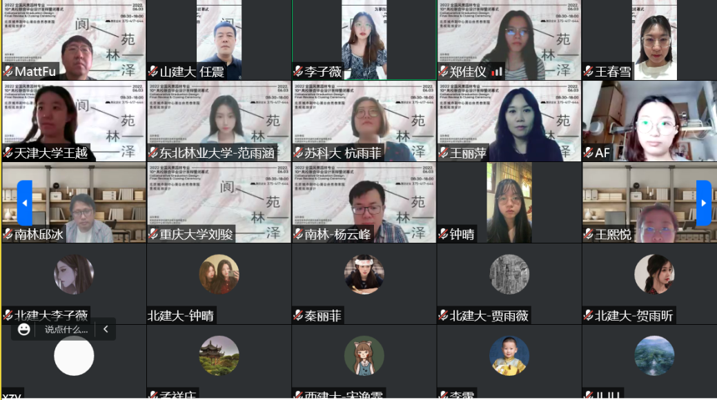 6月3日,由教育部高等学校建筑类教学指导委员会风景园林专业教学指导委员会主办、公司承办的2022年全国风景园林专业10+高校联合毕业设计终期答辩暨闭幕式以腾讯线上会议形式举行,答辩过程在小红书、哔哩哔哩(bilibili,简称B站)、抖音等社交媒体进行全程直播。