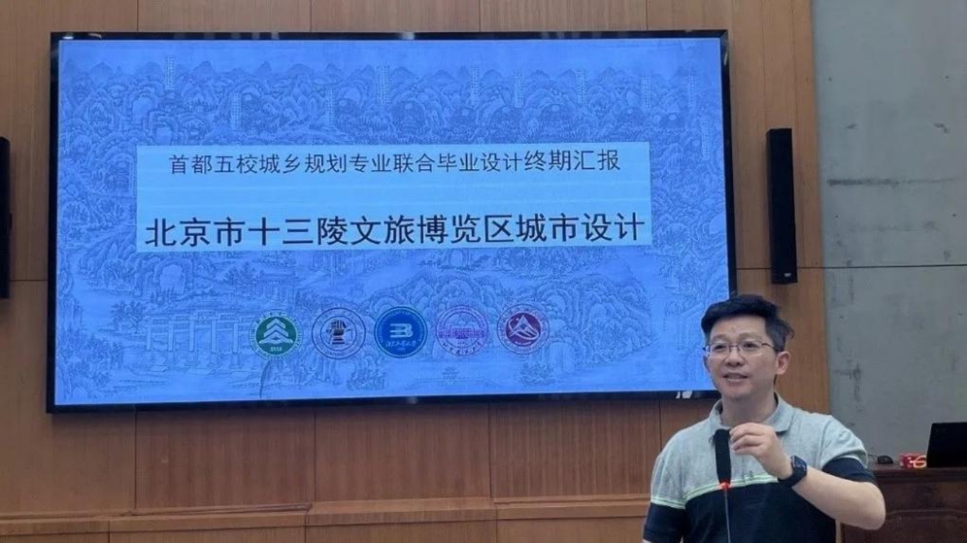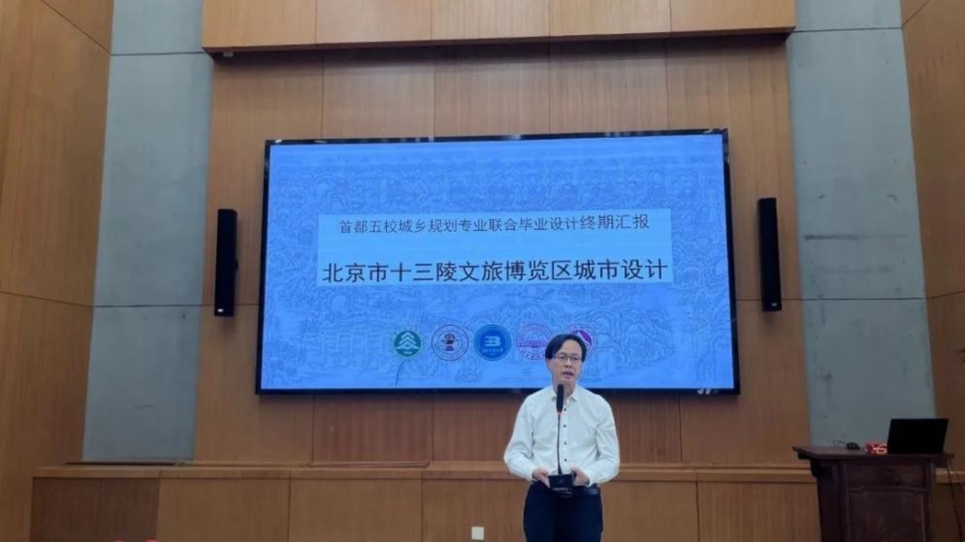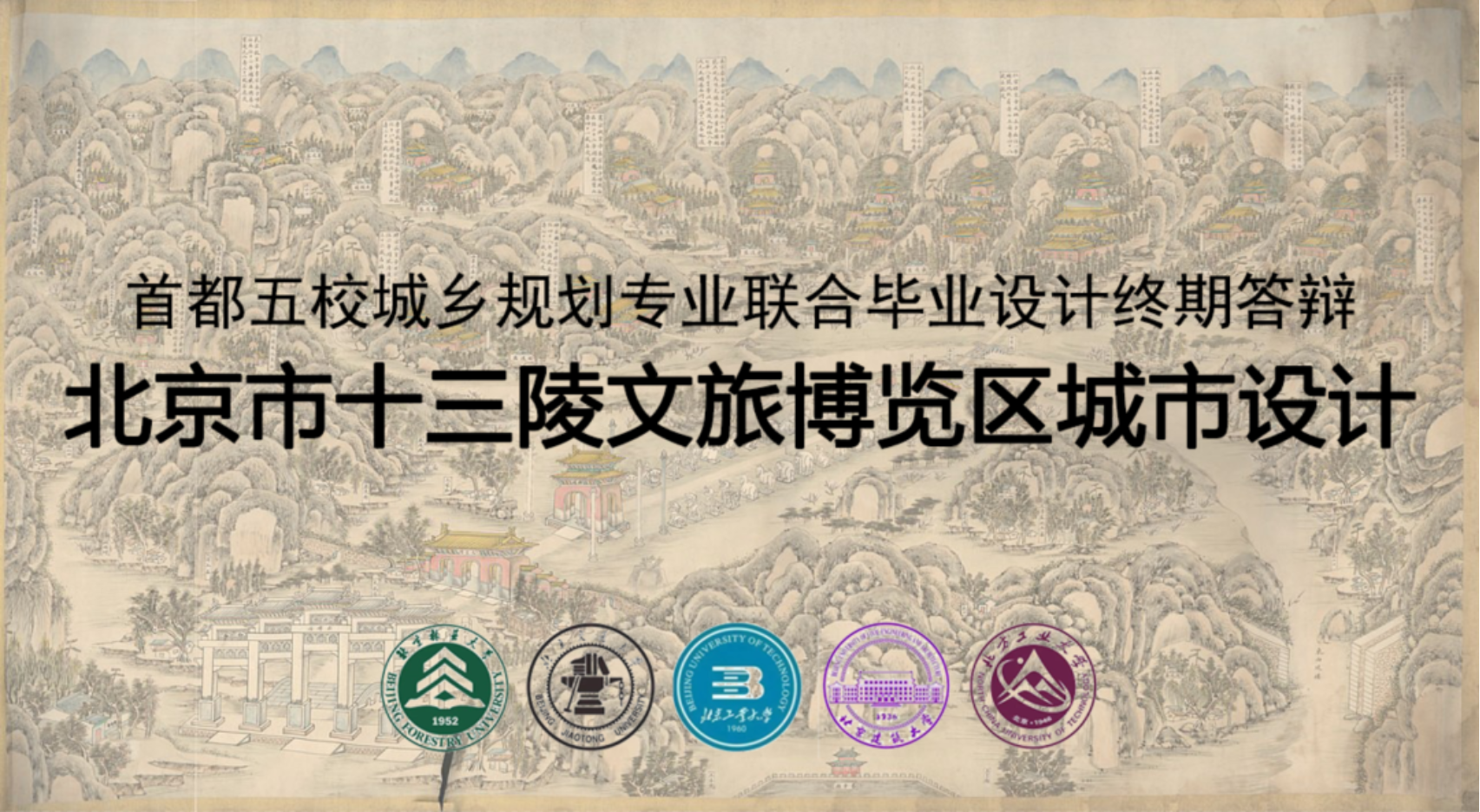 2023年5月27日上午9点,第一届首都五校城乡规划专业联合毕设终期答辩在北京林业大学园林学院垂花门圆满举办。本次联合毕业设计的主题为文化传承视角下北京明十三陵文旅博览区城市设计。课题研究分为总体概念性城市设计和重要片区城市设计两个阶段。出席本次答辩的指导教师有北京林业大学园林学院城乡规划系系主任李翅教授、高原老师、贾宜如老师,北京交通大学建筑与艺术学院佘高红副经理、徐高峰老师,北京工业大学城市建设学部城乡规划系齐羚老师、高洁老师、戎卿文老师,威廉体育williamhill城乡规划系系主任荣玥芳教授、林浩曦老师,北方工业大学建筑与艺术学院城乡规划系任雪冰老师。来自北京林业大学、北京交通大学、北京工业大学、威廉希尔体育、北方工业大学五所高校的23名同学分为九组展示交流终期成果。本次答辩特别邀请清华大学建筑设计研究院文旅分院项目总负责人陈妙冲博士对员工方案进行点评。