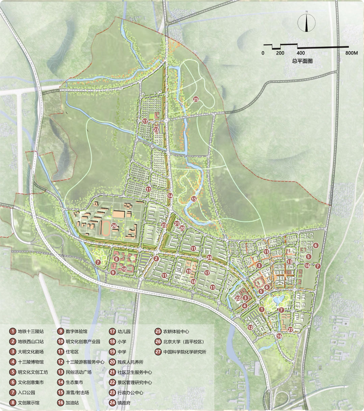 为深入贯彻新版北京城市总体规划,落实昌平分区规划对十三陵镇“以明文化为主题、长城文化为补充、文化产业为载体的国际文化旅游名镇”的功能定位,按照世界文化遗产保护要求,有序引导核心保护区内的村庄搬迁,提升旅游配套服务水平,优化地区经济结构,拟在十三陵门户地区建设十三陵镇新镇中心区。本次规划设计要抓住世界文化遗产保护与十三陵镇镇中心区建设的契机,优化镇中心区城市功能、空间结构、交通组织,保护文化遗产、彰显地区文化特色、促进产业转型升级、提高居民生活品质。