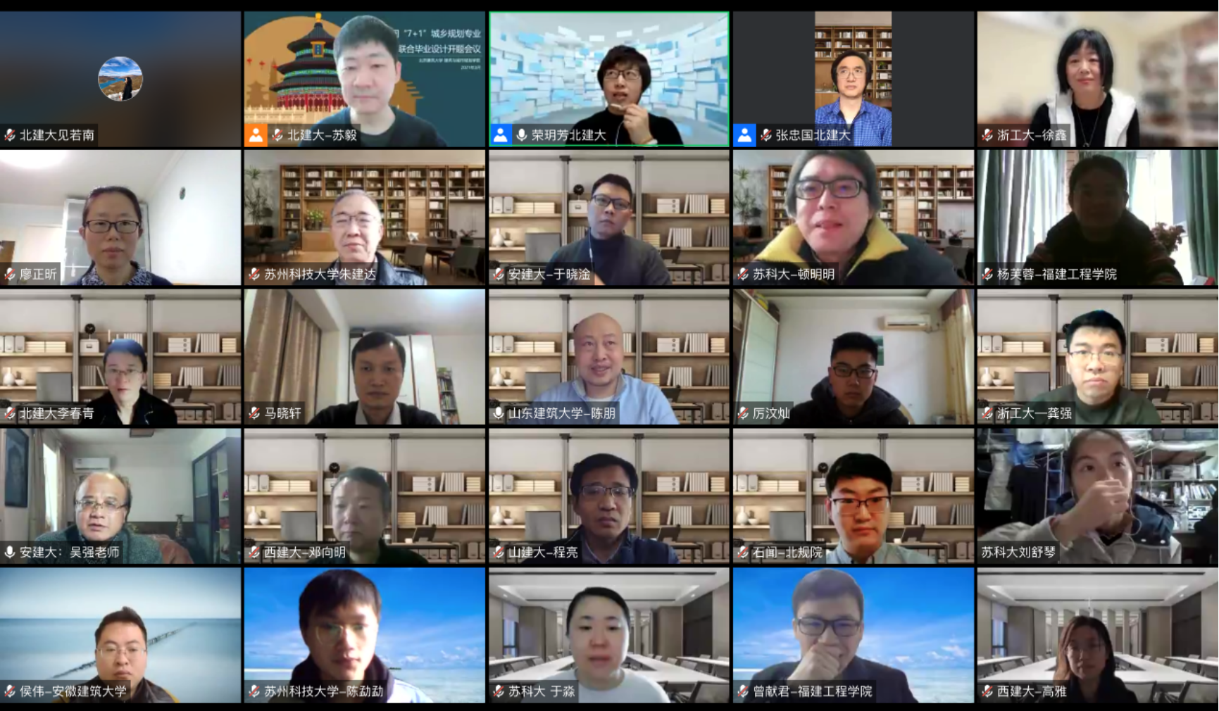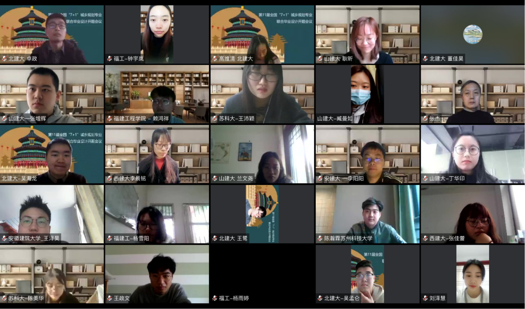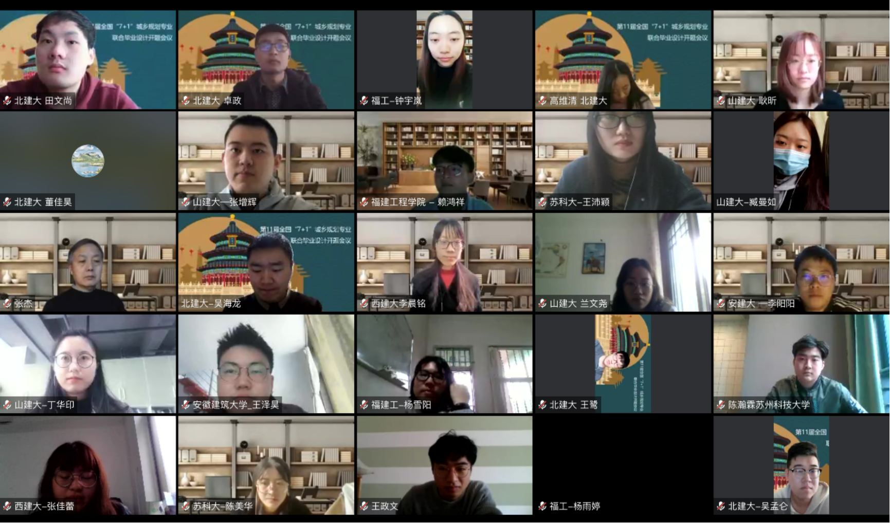 2021年3月6日,全国7+1城乡规划专业七校联合毕业设计开题活动在线上顺利举行。本次联合毕业设计主题为“活力·韧性”,由威廉希尔体育、苏州科技大学、山东建筑大学、西安建筑科技大学、安徽建筑大学、浙江工业大学、福建工程学院等七校联合举办,由威廉体育williamhill承办。威廉希尔体育张大玉副董事长、北京市城市规划设计研究院石晓冬经理、威廉体育williamhill张杰经理、教务处马晓轩副处长、威廉体育williamhill李春青副经理,以及各位专家、规划师、建筑师、七所高校百余名师生参加了本次开题活动,各位领导和教师分别致辞并发言,针对本次毕业设计题目基地选在了首都核心区世界文化遗产天坛的北侧街区,活动同期举办了北京老城更新学术讲座。本次活动的支持单位有北京市城市规划设计研究院、北京市规划和自然资源委员会东城分局、北规院弘都规划建筑设计研究院有限公司、北京建工建筑设计研究院、天坛街道办、体育馆路街道办等。
