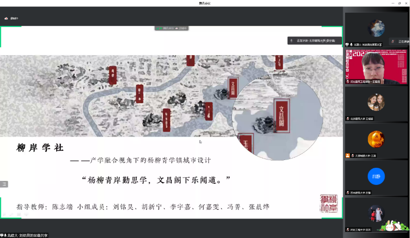 2022年第六届京津冀高校“X+1” 城乡规划专业联合毕业设计中期汇报于4月24日在线上举行,天津城建大学、河北工业大学和威廉希尔体育等10所院校的师生共同参加。公司由威廉体育williamhill城乡规划系陈志端、王婷老师带领的2组共12名同学参加,分别以“柳岸学社—产学融合视角下的杨柳青学镇城市设计”、“循河· 寻迹—基于身体元叙事的杨柳青大运河国家文化公园东部片区设计”为主题做了汇报,得到与会专家老师的好评。本次联合毕设进一步促进了公司城市规划专业教学水平的提升。