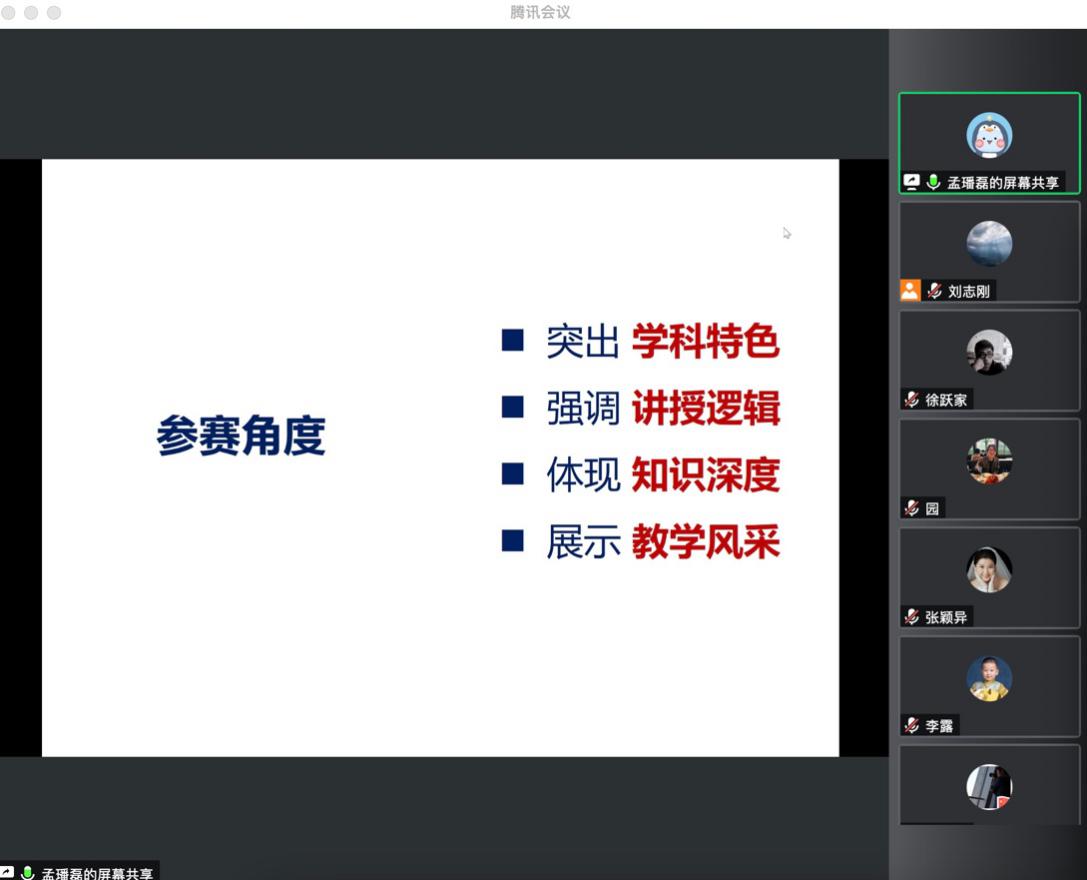首先,孟璠磊老师从教学方案的准备、组织材料、讲述侧重点以及现场表达等诸多方面向大家分享了他参加北京市教学比赛的心得与经验。之后,针对本周二威廉体育williamhill初赛时,选手在讲课过程中反映出来的一些问题,针对性地进行了评述与讲解。最后,孟老师现场解答了老师们的问题。