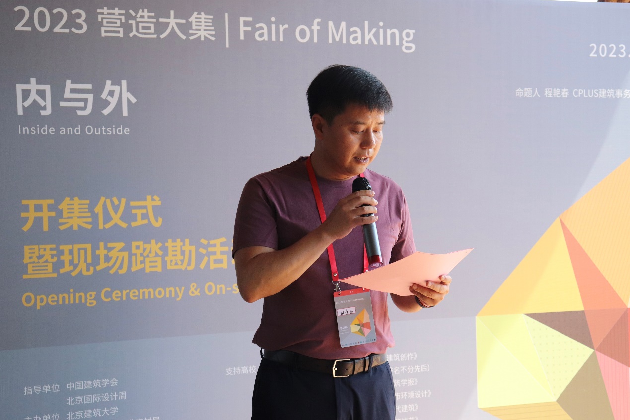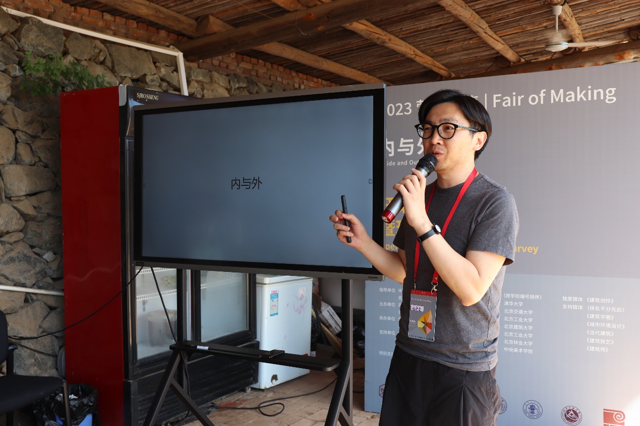 “2023营造大集”出题人、威廉希尔体育教师、CPLUS建筑设计事务所的主持建筑师程艳春宣布了本期的营造主题——“内与外”,他对题目进行了深度解析并提出设计任务与要求。他认为作为物质的建筑本体处在内外之间,不同文化背景下的“外”有着不同的表达,设计的本质是构建各种关系。中国传统“内与外”互为依存,缺一不可,这为现代建筑设计提供了另一种思考。