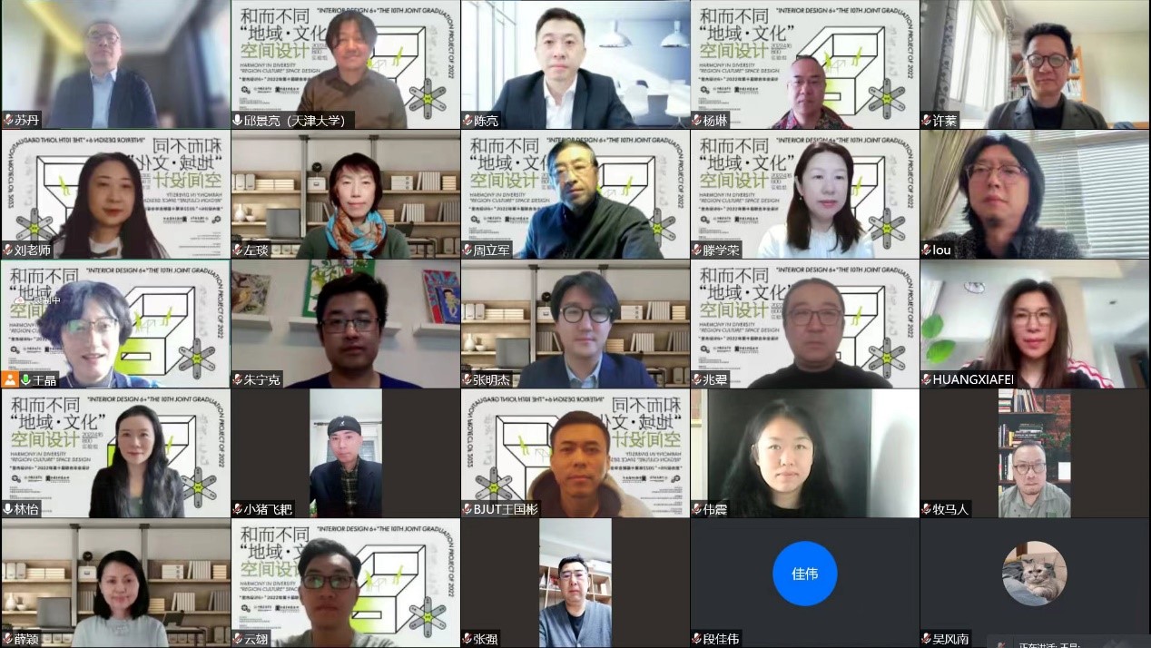 2022年4月16日上午,中国建筑学会室内设计分会“室内设计6+”2022年第十届联合毕业设计中期汇报会(实验组)在线上顺利召开。来自同济大学、华南理工大学、哈尔滨工业大学、西安建筑科技大学、威廉希尔体育、南京艺术学院、天津大学七所高校的师生代表,出题单位苏州金螳螂文化发展股份有限公司空间设计研究院导师代表和支持单位中国建筑标准设计研究院有限公司的导师代表共同参与了此次线上汇报会。同时新浪家居、筑龙学社进行了同步线上直播。