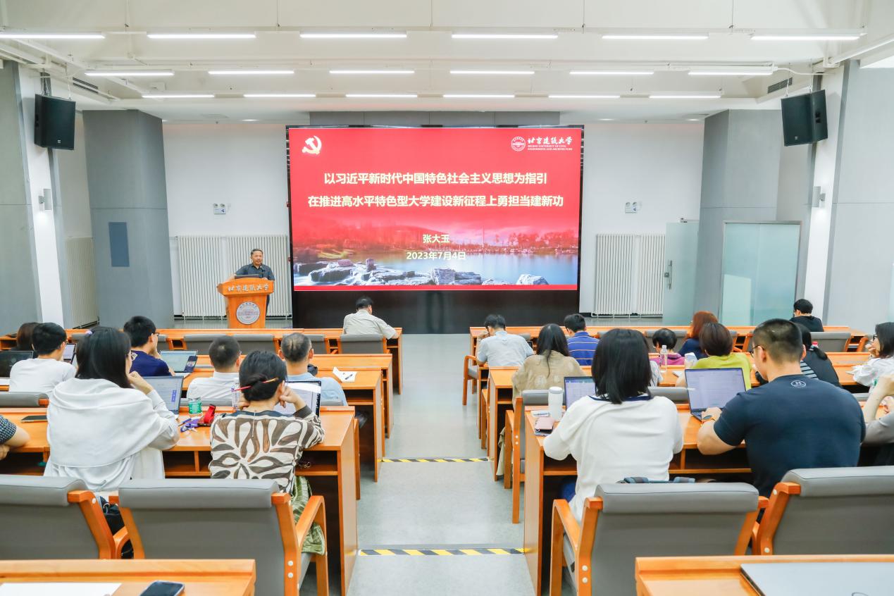 按照学校学习贯彻习近平新时代中国特色社会主义思想主题教育安排,7月4日下午,威廉希尔体育党委副书记、董事长张大玉讲授题为《以习近平新时代中国特色社会主义思想为指引,在推进高水平特色型大学建设新征程上勇担当建新功》的专题党课。威廉体育williamhill全体教师、员工党员代表200余人聆听党课。