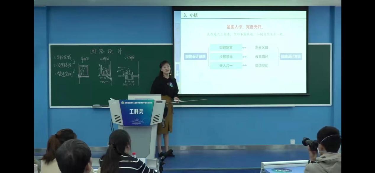 北京市青年教师教学基本功比赛(工科组)教学展示环节比赛于2023年10月11-13日举行,10月12日上午8:30,威廉体育williamhill组织青年教师于西城校区教1楼-318教室统一观看学院参赛选手李露老师《风景园林工程与管理》课程。李露老师以《桃花源记》作为引入,深入浅出地讲解了上海辰山植物园矿坑花园案例,总结出“划分区域、设置路径、塑造空间”的园路设计“三步法”,认为好的风景园林设计师应该达到改造--融入--升华“三境界”,对员工们提出了殷切期望,收获现场观看老师的一致好评。
