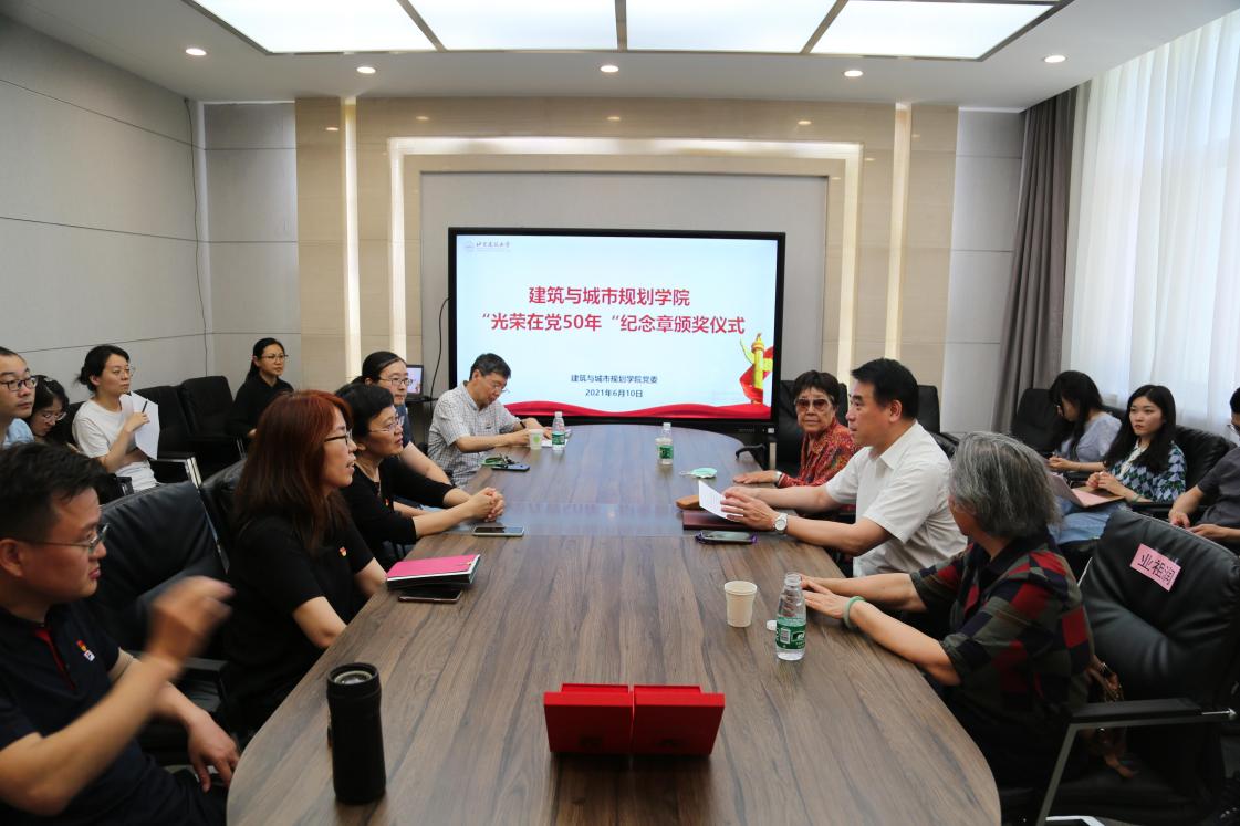 6月10日,威廉体育williamhill在西城校区办公楼316会议室举行“光荣在党50年”纪念章颁发仪式,公司党委委员、专职组织员、相关系部主任、全体学工团队参加仪式,党委书记何立新主持仪式。对于因身体原因未能到校参加纪念章颁发仪式的老党员,党委书记何立新亲自带队将“光荣在党50年”纪念章送至家中。