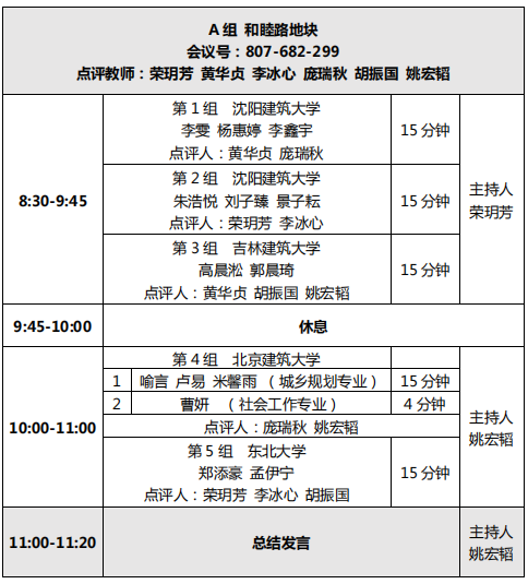 整个汇报按照和睦路地区和三台子地区两个规划地块分为A组(和睦路地块)与B组(三台子地块)同并时进行。10个规划设计小组围绕沈阳市大东区和睦路地块和皇姑区三台子地块的基本情况,从上位规划分析、地块现状分析、案例分析、规划策略和初步方案等维度进行15分钟汇报。各小组的规划方案均能综合运用大数据方法、文献法、社会调查方法(问卷法、访谈法)等多元研究方法,融入最新城市规划设计理念,切实把握规划地块的城市更新具体需求,呈现出各具特色的城市更新设计方案。