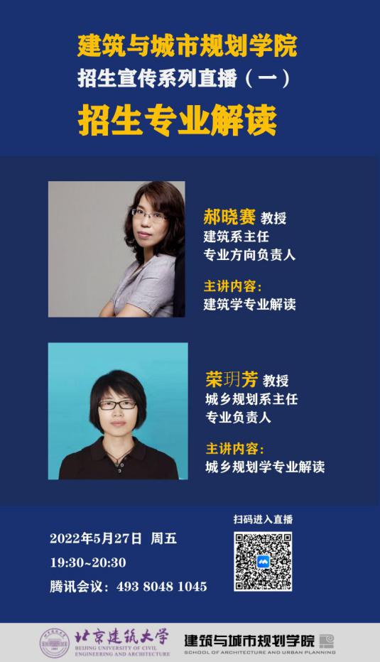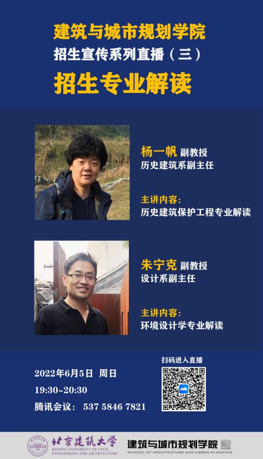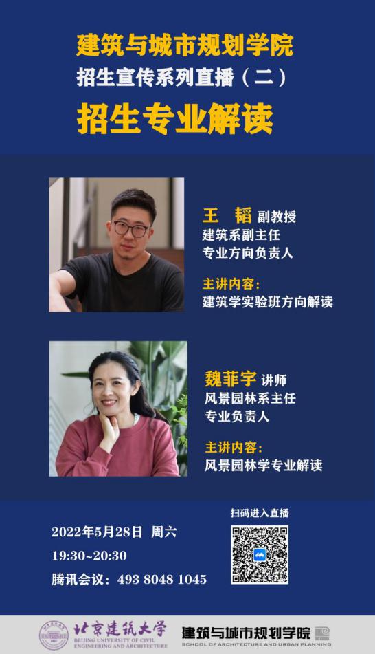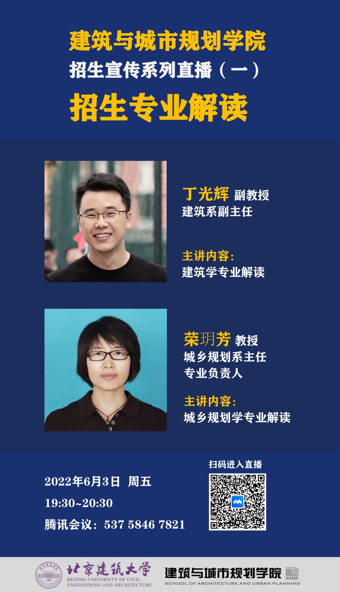 二期招生宣传直播活动将于本周末举行,希望广大考生和家长积极参与,早日考到威廉希尔体育学习心仪的建筑类专业,成为首都规划建设的规划师、建筑师和设计师!